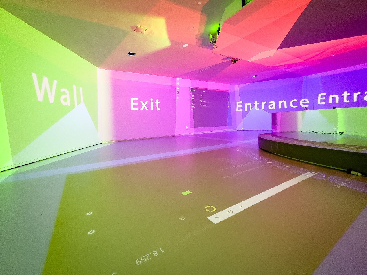 The initial challenge was how to design a room with the proper acoustics without the projection screens on the walls causing unwanted reflections that would disrupt the experience. The WSDG team recommended a theatrical fabric to achieve the desired effect.